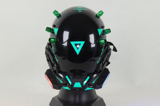 XpopArt Green Rivet Cyberpunk Helmet with light