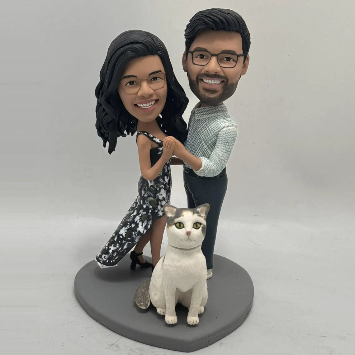 Xpopartcraft Custom 7in double person with a pet bobblehead for couples