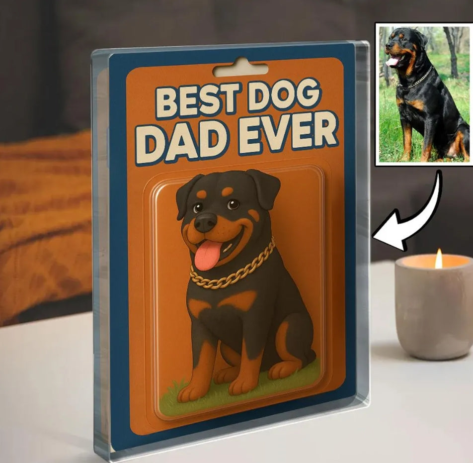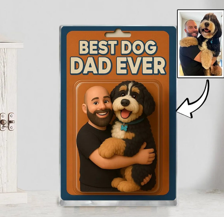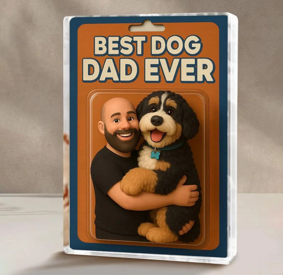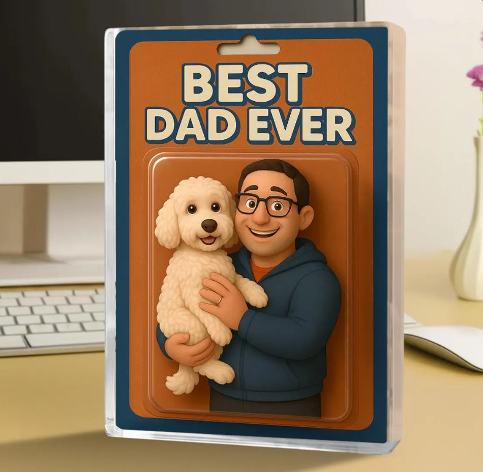 Personalized Father's Day Gift For Dad, Custom Baseball Dad Action Figure Acrylic Block, I Caught The Best Dad Block Gift, Dad And Son Gift