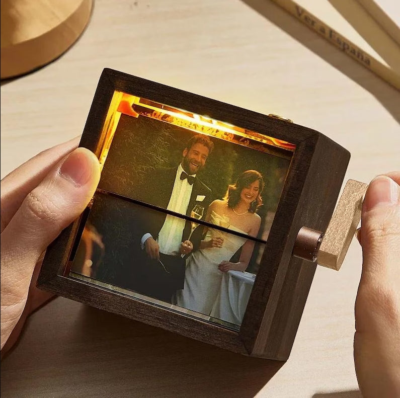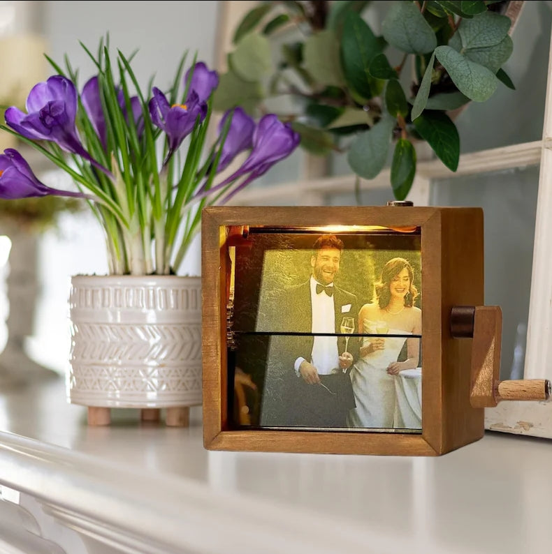 Capture your favorite memories in motion with this Custom Photo Flipbook Frame, a unique and interactive way to relive your most cherished moments! This beautifully crafted hand-cranked flipbook animation machine turns your selected photos into a moving story, making it a one-of-a-kind keepsake for anniversaries, birthdays, or special occasions.