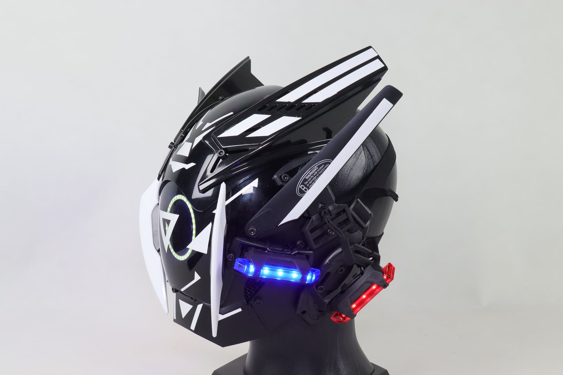 Light up the darkness with our LED White Full Face Mask! Perfect for raves, festivals, or simply adding an otherworldly glow to your ensemble, this mesmerizing mask will captivate onlookers and transport you to a realm of cybernetic wonder. Embrace the luminosity and unleash your inner luminary with our dazzling LED mask!